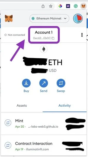 Step 6: Head to Illumination.nyc and click Connect your Metamask then Click to Mint!