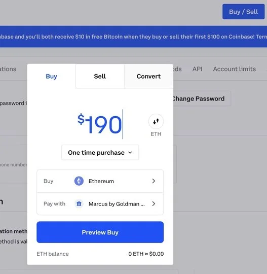 Step 2: Purchase .06 Ethereum (~$190)